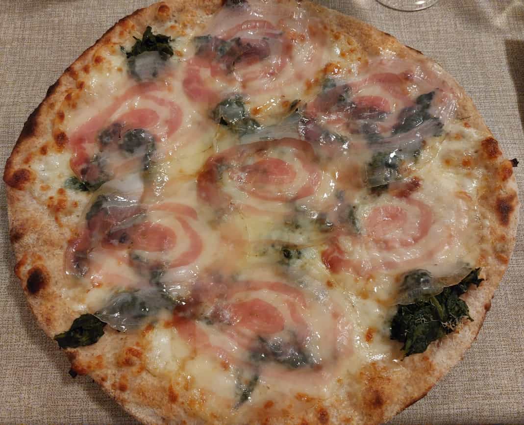 Für das erste Abendessen hatte uns unsere Vermieterin die Pizzeria Le Tavernette direkt um die Ecke empfohlen, die wir dann auch gleich einmal ausprobiert haben. Der Teig war handwerklich gut gemacht, der Gatte und ich hatten tomatenfreie Pizza-Varianten – es ist ja wichtig, neue Ideen für den heimischen Pizzaofen zu sammeln. Meine Pizza empfand ich als etwas sehr käselastig, dadurch gingen die Steinpilze etwas verloren und ich war zum Schluss zwar nicht genudelt, aber ziemlich gepizzat. Danach noch ein kleiner Verdauungsspaziergang mit Besuch in der Gelateria durch das Dörfchen, gratis dabei ein nächtlicher Blick auf Torri del Benaco und den Lago.