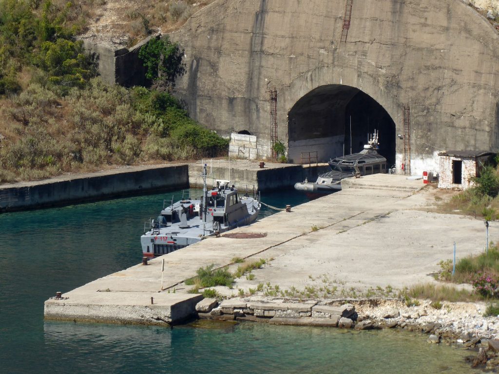 Während der kommunistischen Zeit wurde in der Bucht ein geheimer U-Boot-Hafen gebaut, ob dieser heute noch genutzt wird, hat sich uns nicht erschlossen. Es sind jedenfalls noch Militärschiffe zu sehen, die am Eingang des Hügels vor sich hindümpeln.