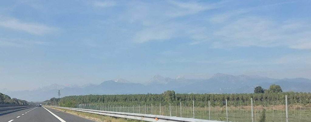 Nach der Ruhephase kneten wir den Teig nun von Hand oder mit einer Teigkarte, bis die zuerst gebildeten Blasen wieder verschwunden sind. Dann geben wir den Balsamico zum Wasser, verrühren oder schütteln das ganze einmal durch und lassen die Flüssigkeit durch die Küchenmaschine in den Teig einkneten.