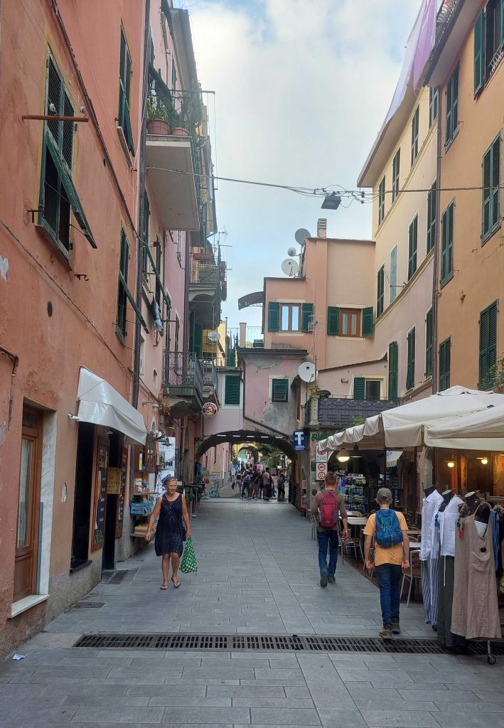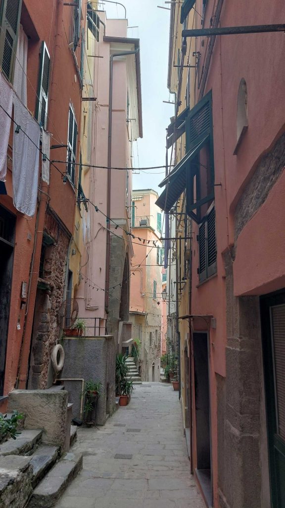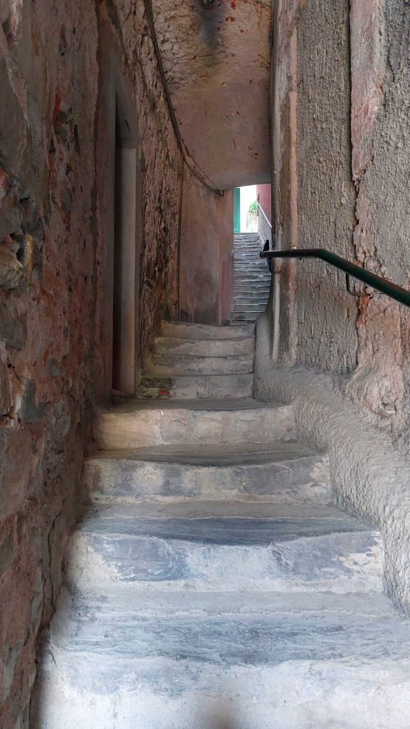 Beide Orte sind ein Musterbeispiel wie auf engstem Raum extrem viel gebaut werden kann. Es gibt ja nicht unendlich Platz dort. Vermutlich würde jedes deutsche Bauamt laut aufschreien und jedes zweite Gebäude abreißen, aber unsere italienischen Nachbarn sehen das südländisch entspannt und geben einfach den Treppen auch Straßennamen. Ein Bummel mit offenen Augen lohnt sich auf jeden Fall in beiden Orten. In Vernazza sind die Gebäude farbenfroher als in Monterosso. Ich kann nicht genau beschreiben warum: Ich fand Vernazza einfach angenehmer. Wir haben nach unserer kleinen Pause dann den Rückweg angetreten, natürlich wieder zu Fuß. Dadurch konnten wir jeden Höhenmeter und jede Treppenstufe doppelt genießen.
