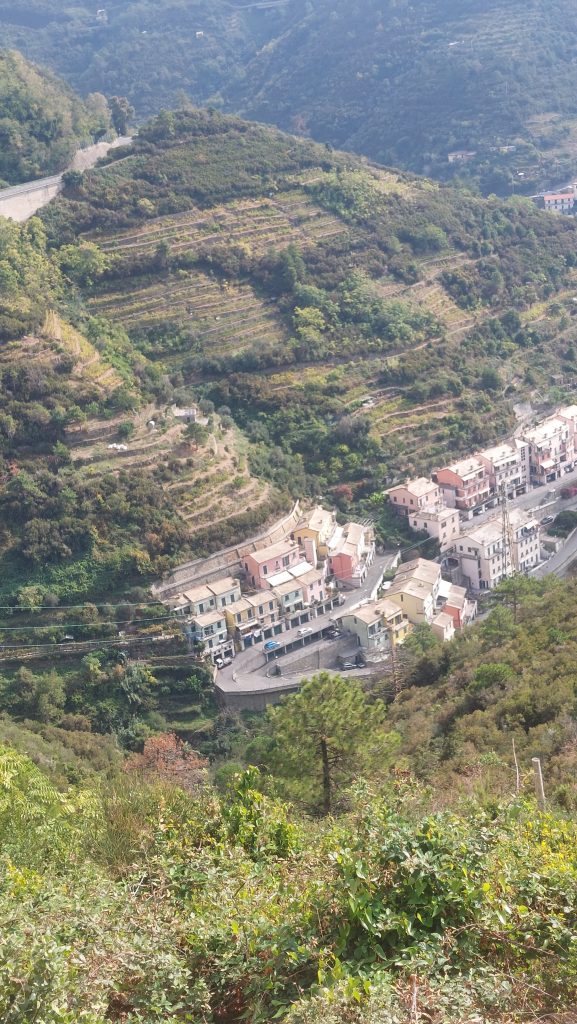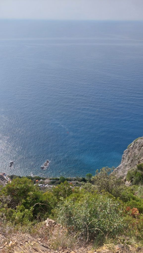 Beim Abstieg nach Manarola konnten wir direkt auf den kommenden Aufstieg nach Corneglia schauen und die ersten Zweifel stellten sich ein. Wieder ein Weg, der nur aus Stufen besteht, und ungefähr das gleiche Auf und Ab wie auf der ersten Etappe fanden wenig Begeisterung (besonders bei mir). Nach dem wir wieder in Reichweite einer Internetverbindung waren, haben wir uns über den Ort informiert und diese Etappe ganz spontan abgewählt. Corneglia ist der kleinste Ort der Qinque Terre und verfügt nicht über einen direkten Zugang zum Meer, sondern liegt ca. 100 Meter oberhalb. Deshalb haben wir in Manarola unsere Mittagspause eingeschoben und ich habe die erfrischende Kühle des Mittelmeeres genossen – echt eine Wohltat auch Mitte Oktober!