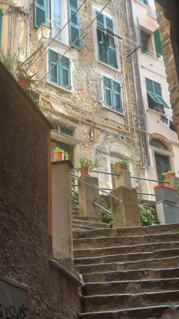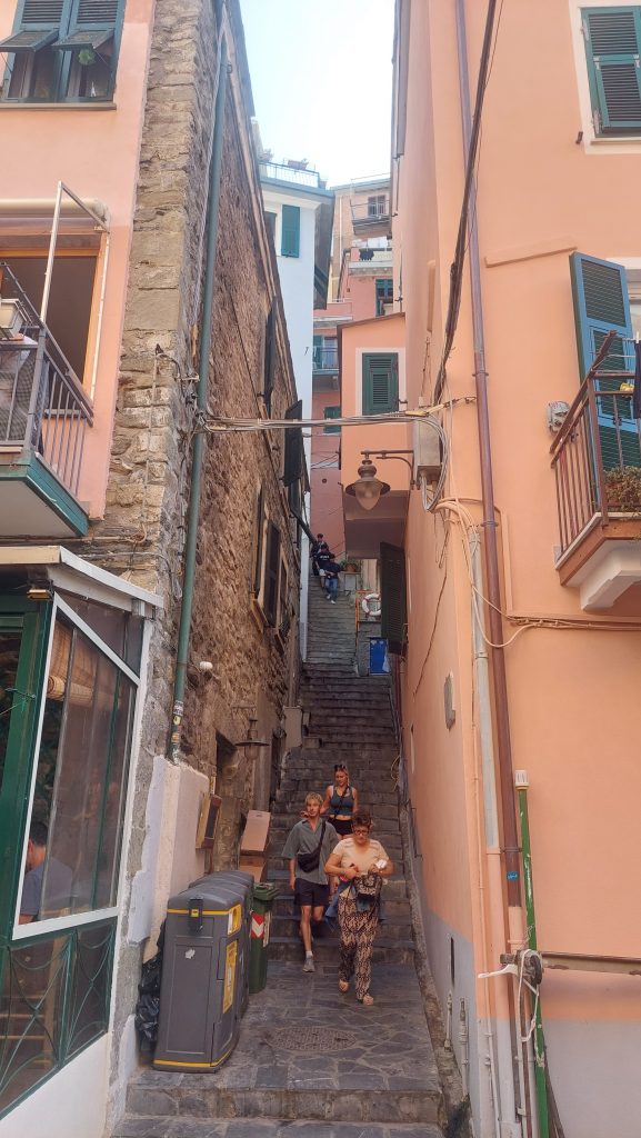Der Wanderweg von Riomaggiore startet sofort mit Treppen und das ändert sich auf der kompletten Strecke nur sehr selten, gefühlt gibt es nur Treppenstufen. Die wenigen Meter gerade Schritte kann man kaum genießen, dann kommen schon wieder Stufen, einige davon auch gern mal einen halben Meter hoch.