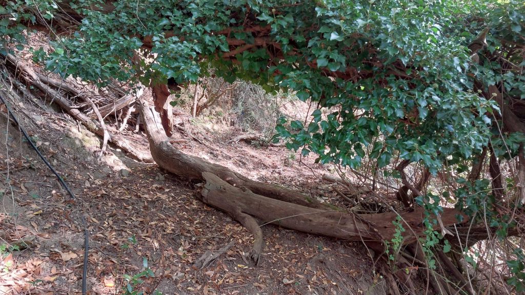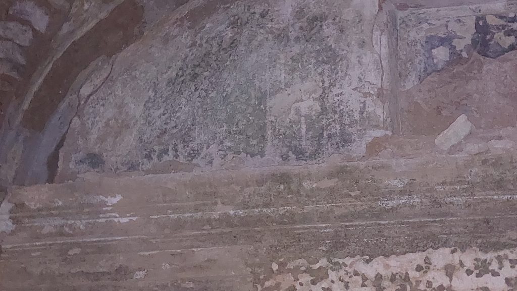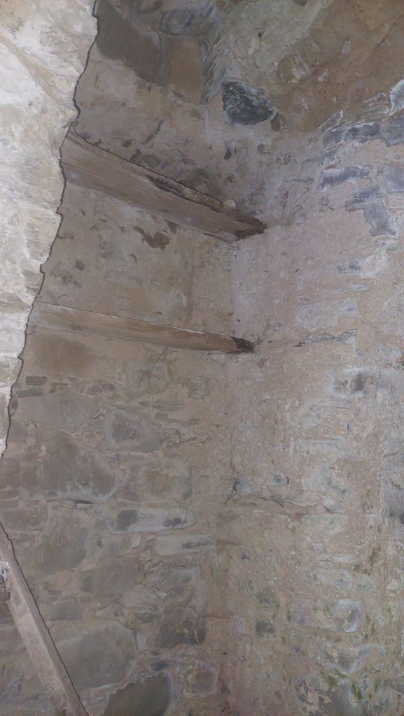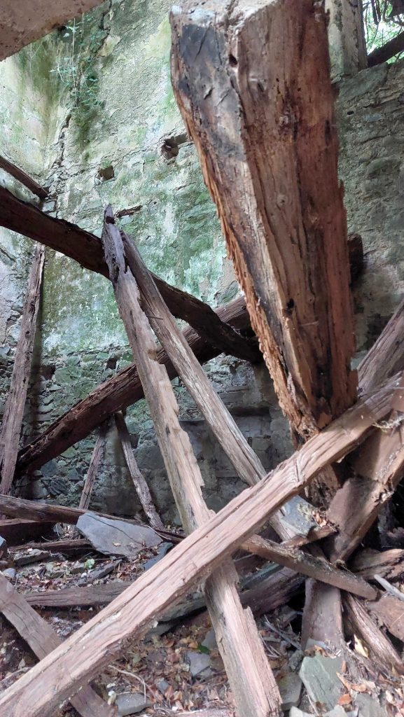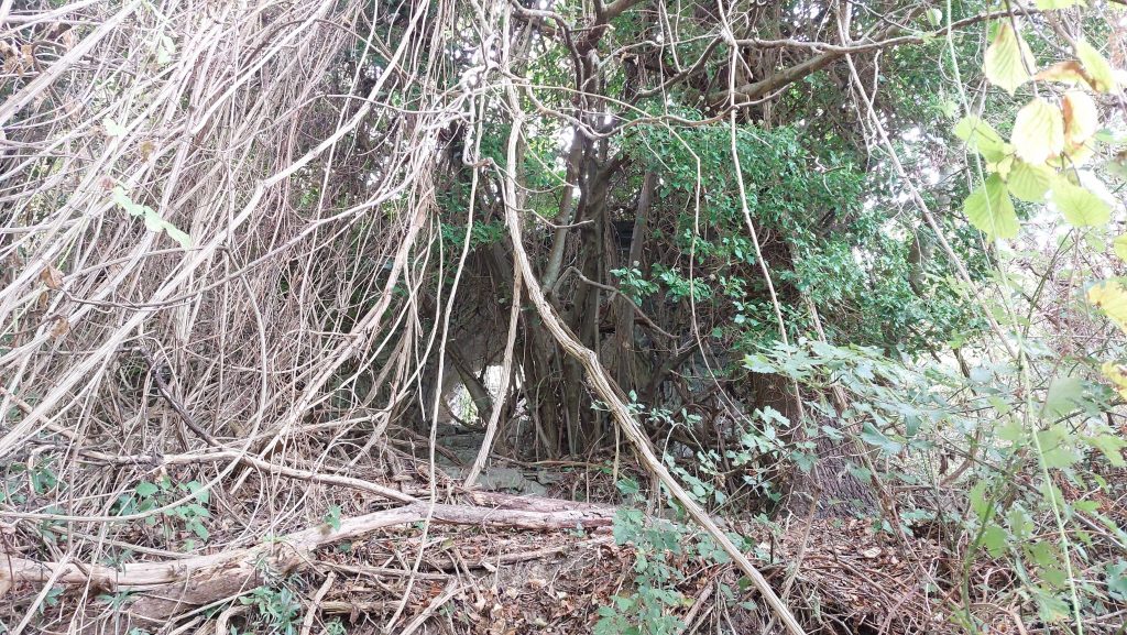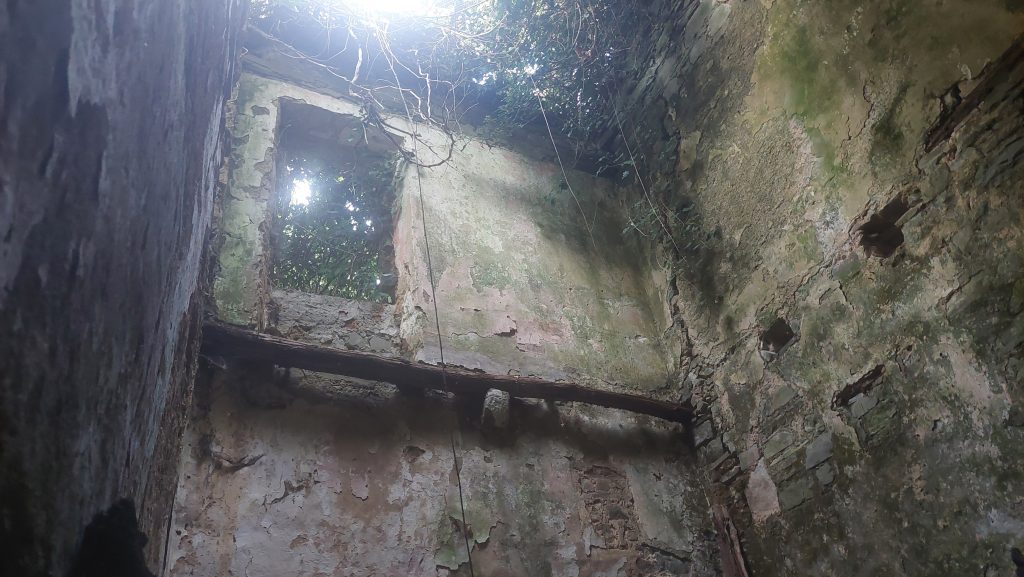 Die noch erhaltenen Häuser muss man schon suchen, die Natur ist wirklich kräftig am Arbeiten, um die Gebäude wieder zu vereinnahmen. Man muss schon die Augen wirklich offen halten, sonst rennt man einfach an den Häusern vorbei. Den Weg zu den Gebäuden mussten wir uns teilweise hart erarbeiten, denn Pflanzen und davon einige mit Dornen haben versucht, uns von einer Besichtigung abzuhalten. Aber keine Chance! Wir haben es geschafft, die Überreste der Gebäude unter die Lupe zu nehmen. Das Dorf war nicht sonderlich groß, aber selbstverständlich gab es auch dort eine Kapelle – Kreuz und Altar waren noch vorhanden.