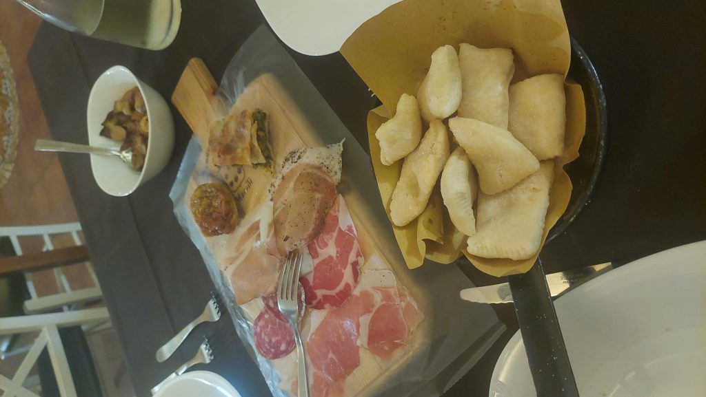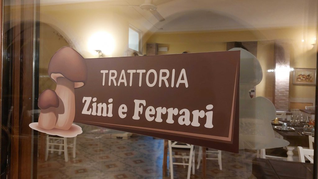 Da es nun der letzte Abend hier war, war auch wieder ein Restaurantbesuch geplant. Der Gatte hatte eine Trattoria mit dem klangvollen Namen Zini e Ferrari herausgesucht, berühmt für einen tollen Ausblick und spezialisiert auf Speisen mit Pilzen.