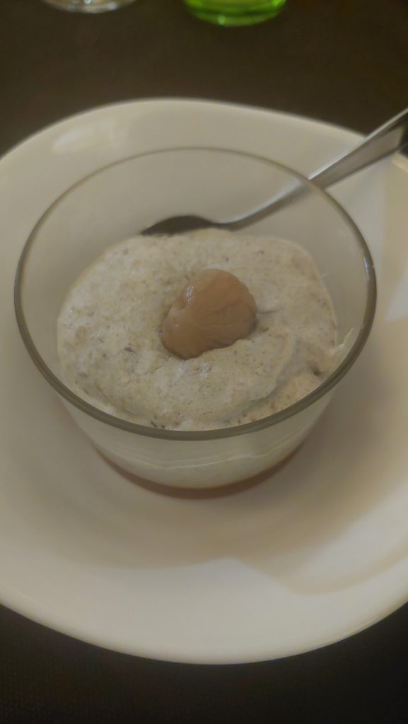 Für mich war mit einem Espresso die Völlerei vorbei, bei den anderen beiden passte, wie auch immer, noch ein Dolce hinein. Der Junior hatte die Torta della Nonna und der Gatte eine Mousse aus Pilzen und Kastanien.