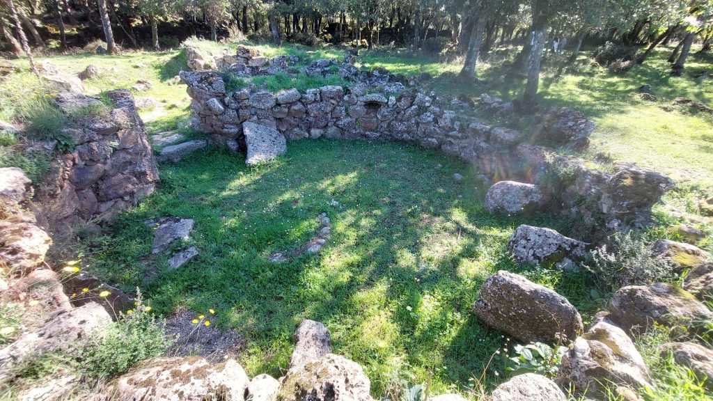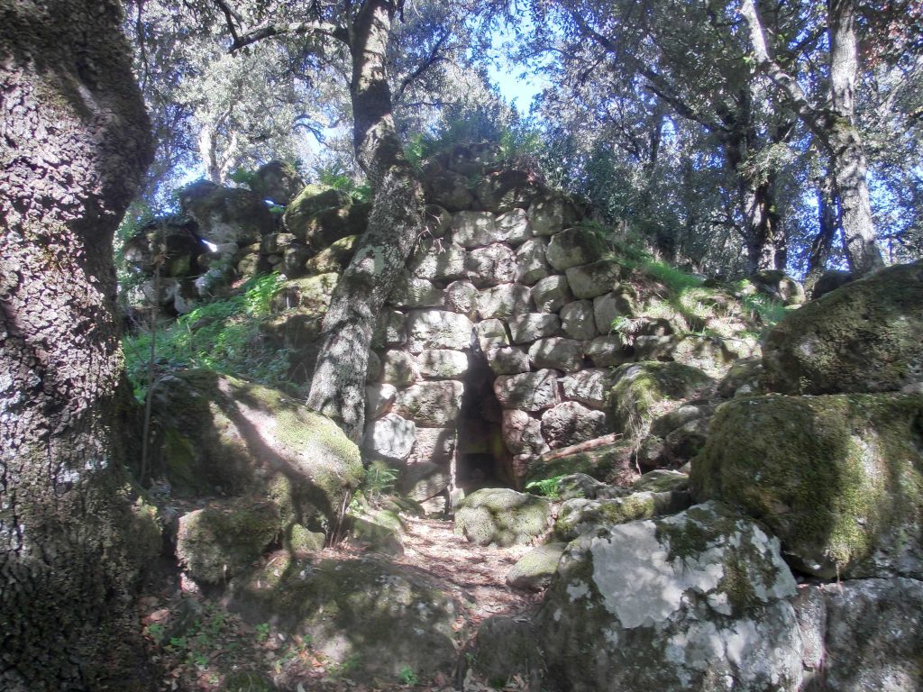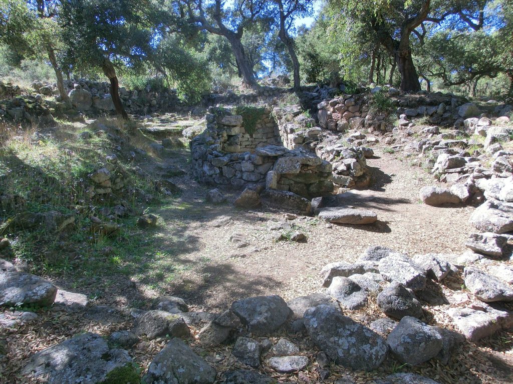 Ziel eins war das im Wald (Foresta di Burgos) versteckte Nuraghen-Dorf Villaggio Nuracico Costa, das außerdem noch von Kühen bewacht wurde, die den Weg aber freiwillig räumten. Danach wollten wir noch eine kleine romanische Kirche ansehen. Wie aber auf Sardinien nicht ganz unüblich, war diese im Hinterland einer Farm versteckt. Schilder wiesen auf die Existenz des Bauwerkes hin, aber einen Weg konnten wir nicht finden. Also gleich weiter zur nächsten Siedlung der ersten protokollierten Bewohner der Insel, zum Nuraghen-Dorf Complesso Nuragico e Nuraghe di Noddule.