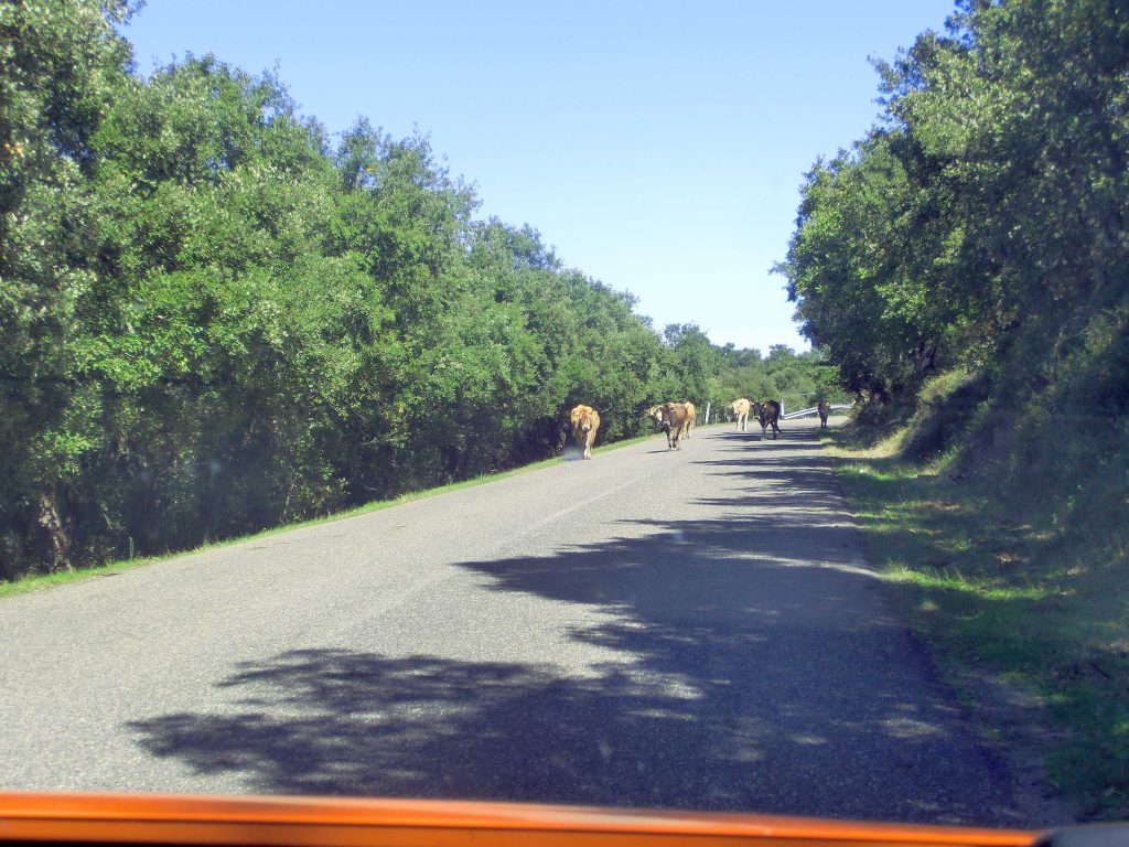 Auf Sardinien muss man immer damit rechnen, dass sich Tiere auf der Fahrbahn befinden können, und natürlich hatten wir gleich am ersten Tag das Glück, einer Kuhherde auf der Straße zu begegnen. Ohne Schäden konnten wir auch dieses Mal passieren und erreichten das Ziel.
