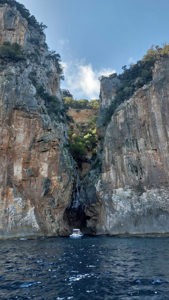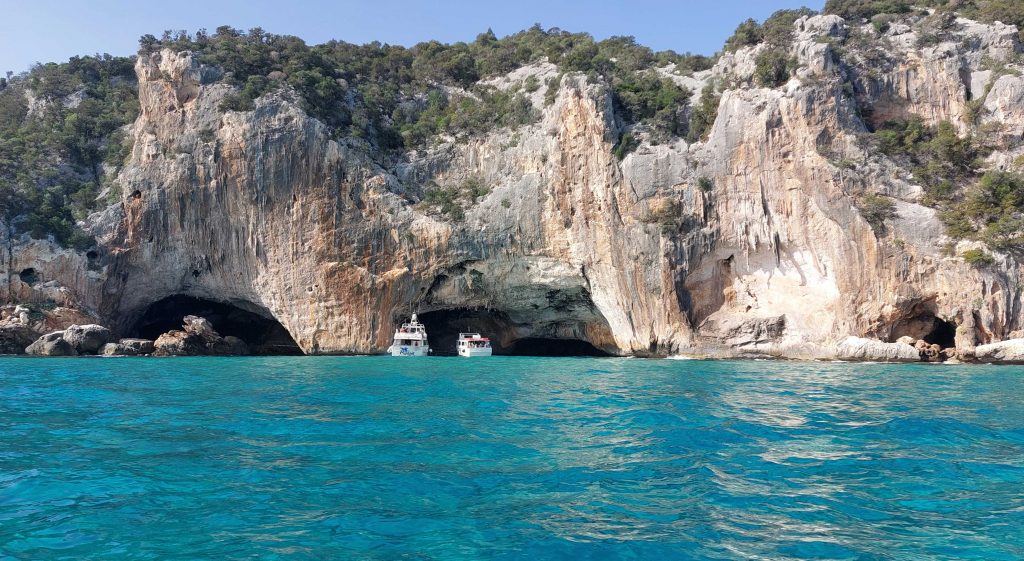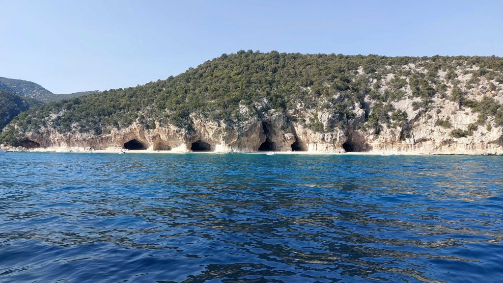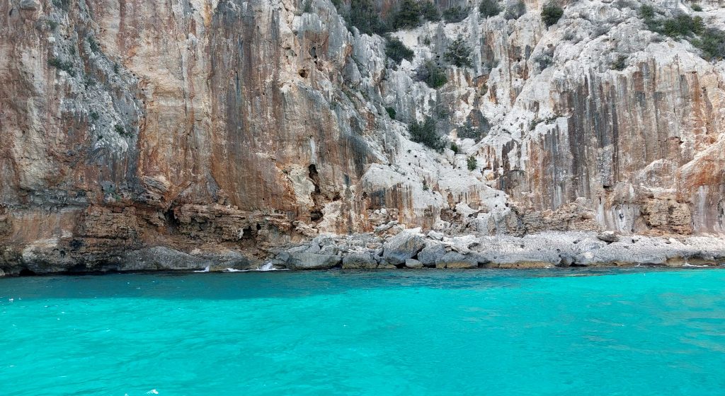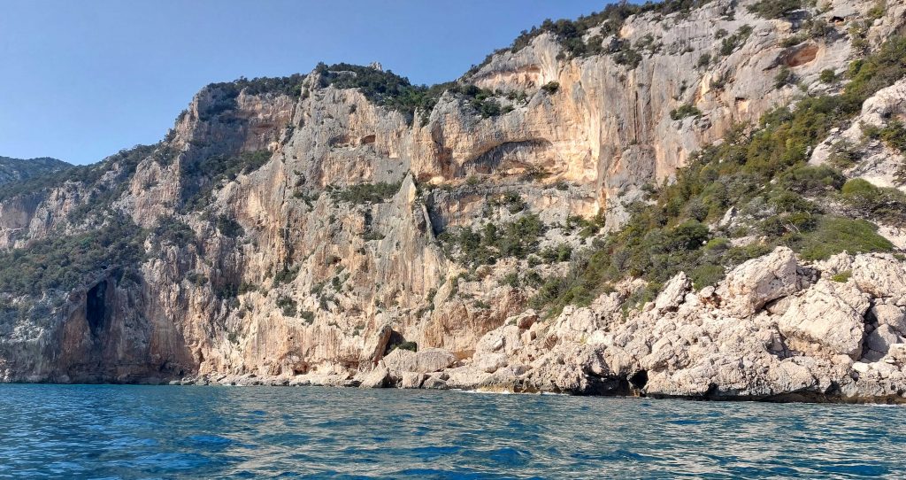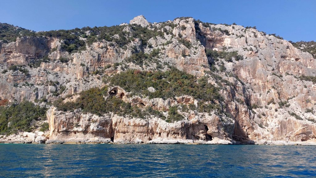 In Italien darf man Motorboote bis 40 PS ohne Bootsführerschein bewegen. Gerade auf Sardinien ist es absolut lohnenswert, diese Chance zu ergreifen, da es Buchten und Strände gibt, die von Land einfach nicht erreichbar sind. Heute soll es der letzte richtig warme Tag auf Sardinien sein, ab morgen wird es nicht so lausig kalt wie in Deutschland, aber schon etwas frischer. Darum haben wir uns gestern ein Gonome (Schlauchboot) reserviert, mit dem wir heute einen Teil der Küste bereist haben. Natürlich gab es auch immer wieder einen Stopp, um direkt vom Boot ins Meer zu springen. Leider waren heute so viele Menschen unterwegs, dass jede Bucht schon belegt war und es keine Chance gab, auf die Badehose zu verzichten. Spaß gemacht hat es natürlich allemal, zumal wir heute auch noch tierische Strandbesucher beobachten konnten.