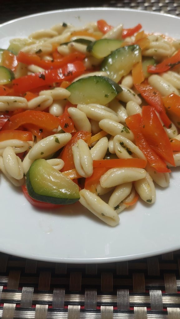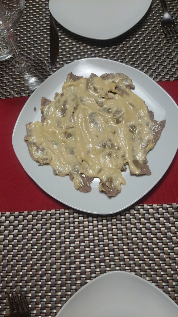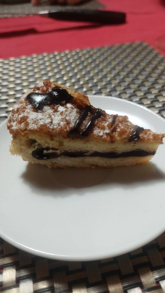 Auch am 25. wurde selbst gekocht und gebruzelt: zum Start gab es Vitello Tonato, gefolgt von Pasta mit Gemüse und als zweiten Gang hatten wir Scalopine in Weißwein. Das Dessert war hier dann ein Kuchen mit Schokoladencreme. Den Möglichkeiten der Ferienwohnung geschuldet, kamen die Thunfischsoße der Vorspeise und auch der Kuchen als Fertigprodukt aus dem Supermarkt daher. Die Küche einer Ferienwohnung bietet eben nur begrenzte Möglichkeiten, das erfordert Kompromissbereitschaft.