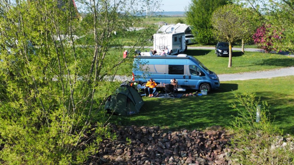 Die Buchung lief recht unkompliziert per Email, allerdings wird dort nur Barzahlung akzeptiert. Da wir in der Vorsaison unterwegs waren, hatten wir noch eine recht große Auswahl an Stellplätzen. Wir hatten uns schon im Vorfeld für einen Premiumstellplatz direkt am Stausee entschieden und unserer Auswahl auch recht schnell getroffen. Der Platz war ausreichend groß, dass wir dort auch noch das Zelt für den Junior unterbringen konnten. Die Stellplätze sind teilweise unter dem Rasen geschottert, so dass ein Hammer zur Montage der Heringe durchaus angebracht ist. Der Stellplatz am Wasser war relativ eben, so dass wir ohne Keile auskommen konnten. Am zweiten Tag hatten wir dann auch sehr gutes Wetter und konnten nach dem Öffnen der Fenster einen tollen Ausblick auf den See direkt nach dem Wachwerden genießen. Das Duschen ist inklusive, so dass lästiges Kleingeldtauschen und der Erwerb irgendwelcher Chips oder das Aufladen von Duschkarten entfällt. Es gibt einen Brötchenservice, den wir natürlich nicht in Anspruch genommen haben, da wir unsere eigenen Brötchen mitgebracht haben – Tipps gibt es in der Rubrik Backen.