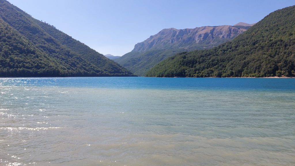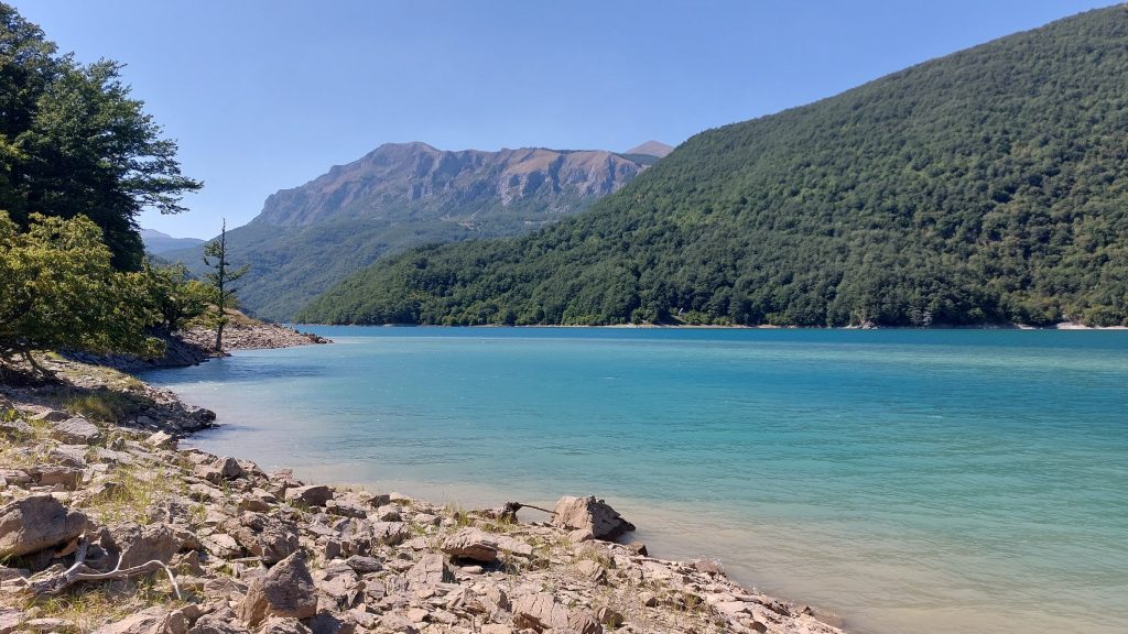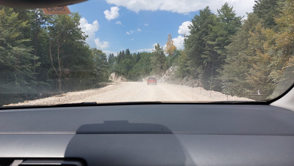 Auf der Fahrt konnten wir schon einen ersten Eindruck von der Landschaft gewinnen. Nach diversen Zwischenstopps, z. B. mit Blick auf die Bucht von Kotor oder den Slano See (Slansko Jezero) und einem kleinen Off-Road-Abenteuer, sind wir dann wohlbehalten in unserem Ziel Plužine angekommen. Die Off-Road-Einlage haben wir wohl den örtlichen Verkehrsplanern zu verdanken, scheinbar wird bei einer Straßenerneuerung nicht gleich eine Umleitung eingerichtet, sondern die Baustelle weiterhin als Straße ohne feste Fahrbahndecke weiterverwendet.