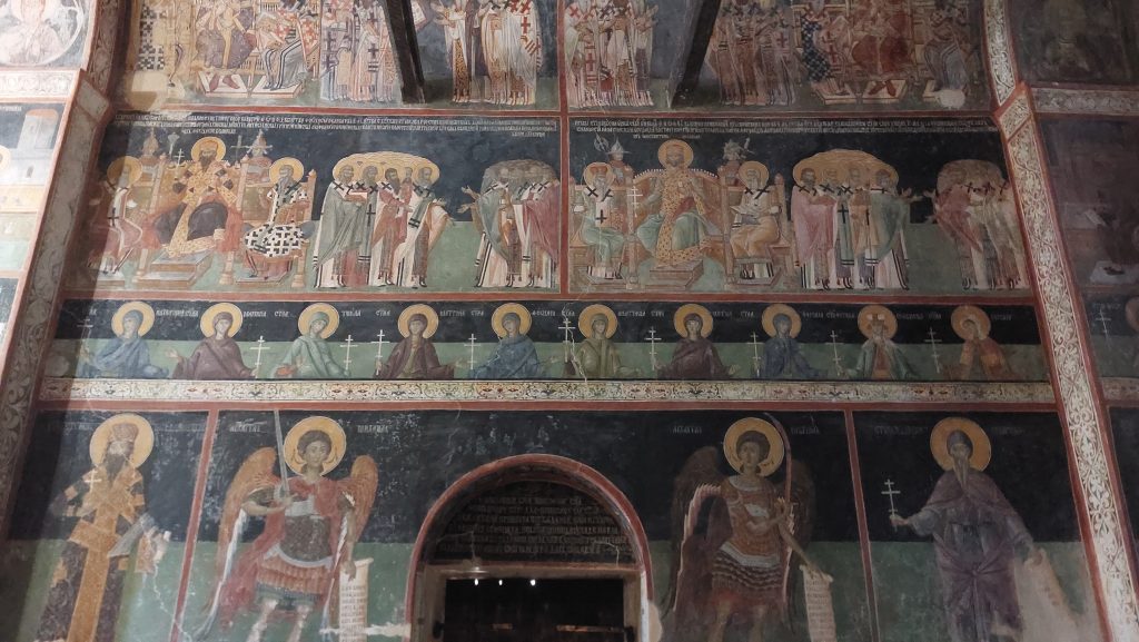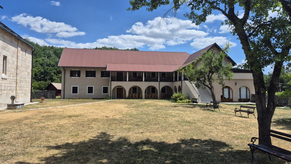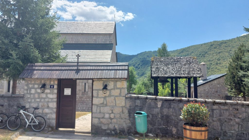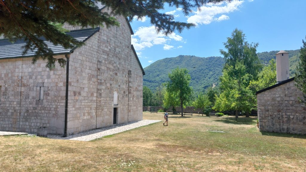 Warum wollten wir eigentlich zu diesem Kloster? Als der Pivsko See als Stausee angelegt wurde, mussten natürlich auch einige Dörfer geräumt werden. In einem dieser Dörfer gab es diese Kirche mit dem Schrein, den Glocken und dem Kloster. Beim Umzug wurden 1.260 m² Fresken abgelöst und am neuen Standort wieder angebracht. Der gesamte Ab- und Wiederaufbau dauerte ca. 12 Jahre. Das Ensemble ist wirklich sehr beeindruckend und absolut sehenswert.