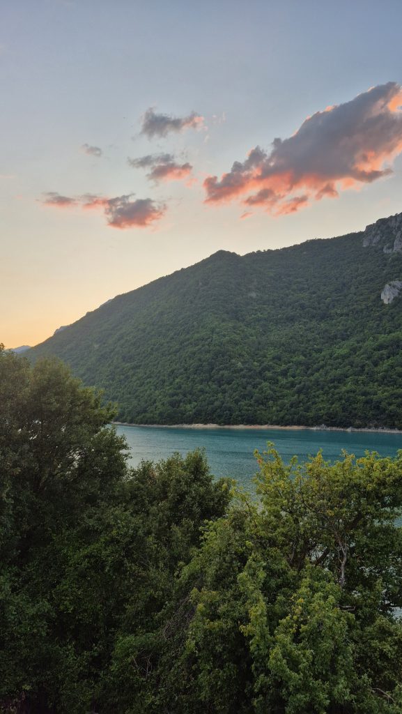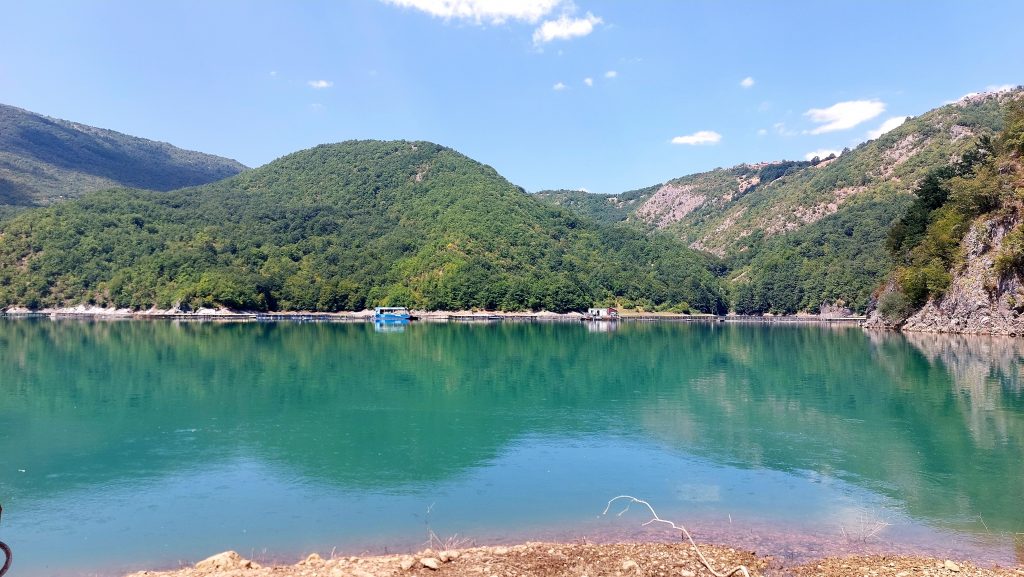 Weil in der Nähe auch noch ein anderer Ausläufer des Pivsko Stausees liegt, sind wir dann gleich noch ein paar Meter weiter runter gerollert, um zu schauen, ob wir vielleicht noch einmal eine versteckte Badebucht finden können. Leider hatten Einheimische dort schon eine Fischzucht etabliert, also kein Badeplatz!