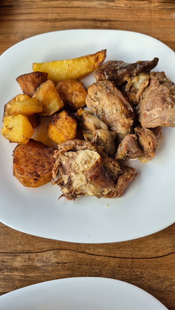 Nach diesem „Triathlon“ haben wir ein richtiges Restaurant verdient. Das haben wir uns dann auch gegönnt und typisch montenegrinische Gerichte ausgewählt: Lamm und Kalb aus dem Erdofen und für den Junior ein Neguski Steak, quasi ein Cordon bleu aus Kalbfleisch ohne Panade. Alle Gerichte waren lecker, nichts Besonderes, sehr bodenständig. Preislich waren wir für drei Personen mit Getränken mit 45 Euro wirklich angemessen unterwegs.