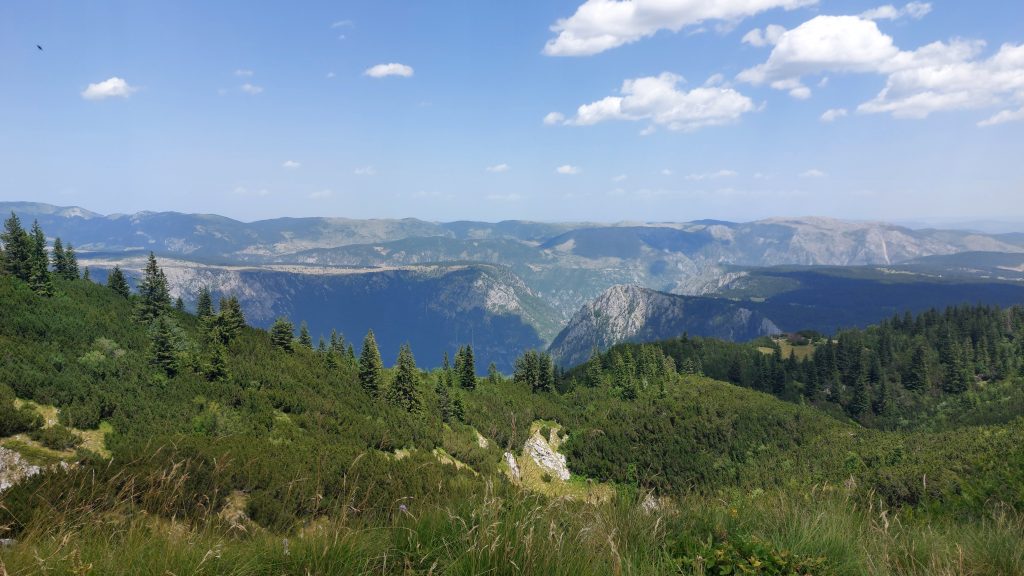 Wir haben uns also noch einmal in den Durmitor Nationalpark, der mit den wirklich engen Straßen, begeben und die Rundfahrt („Panoramastraße 2: Durmitor-Ring“) gestartet. Gespickt mit Erläuterungen und Interviews – zu den Dörfern (dass einige im Winter von der Außenwelt abgeschnitten sind oder nur noch 14 Leute im gesamten Ort wohnen); Erklärungen zur Geschichte; Details zu Flora und Fauna; Legenden zu Bergen und Tälern und Namensgebungen; zum typischen Essen im bergigen Norden u. v. m. – sind wir knapp sechs Stunden unterwegs gewesen.