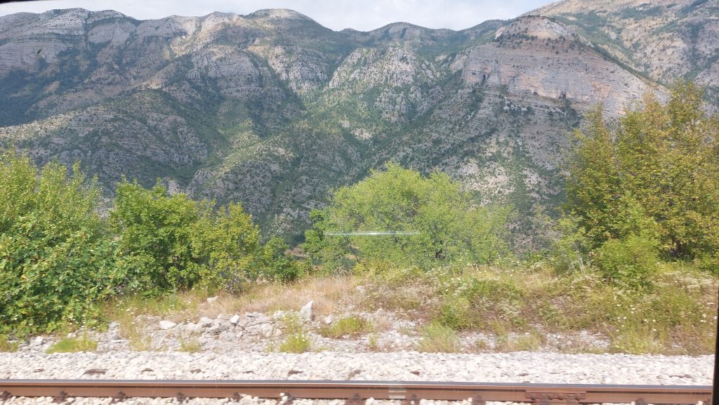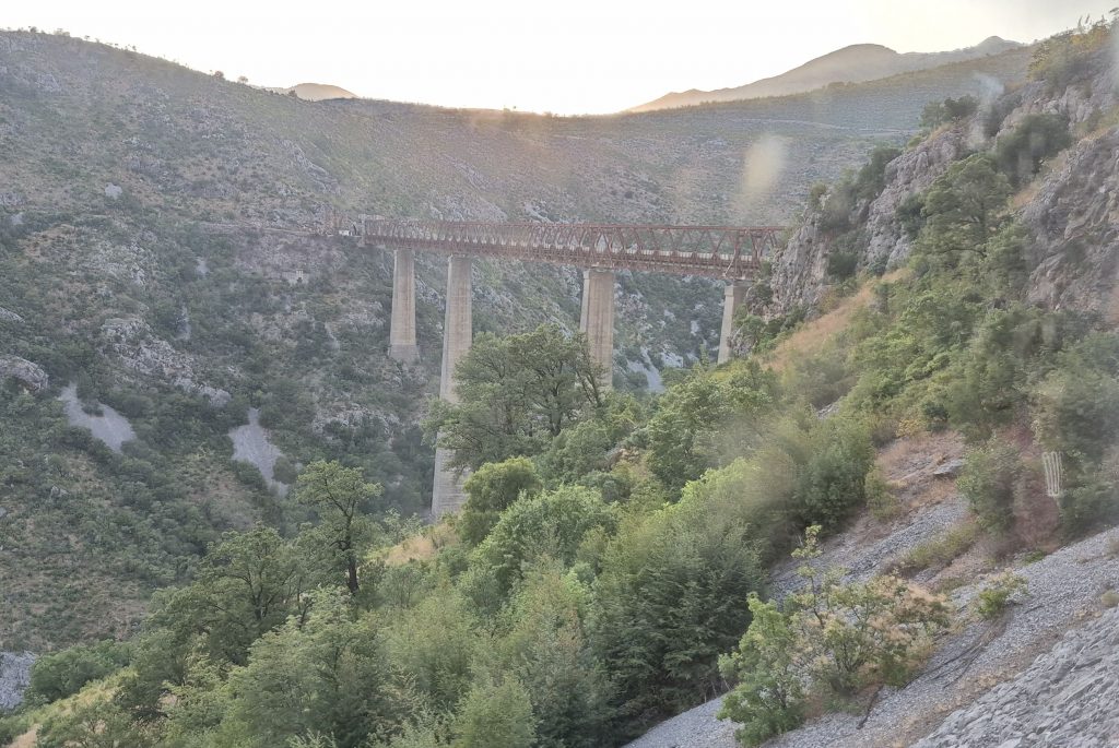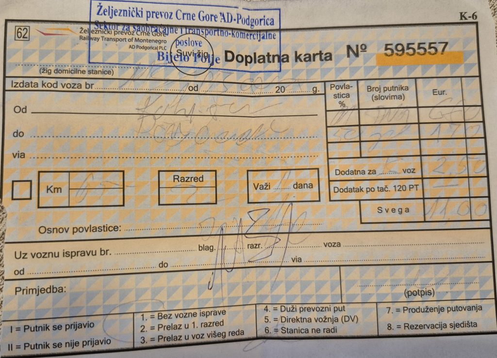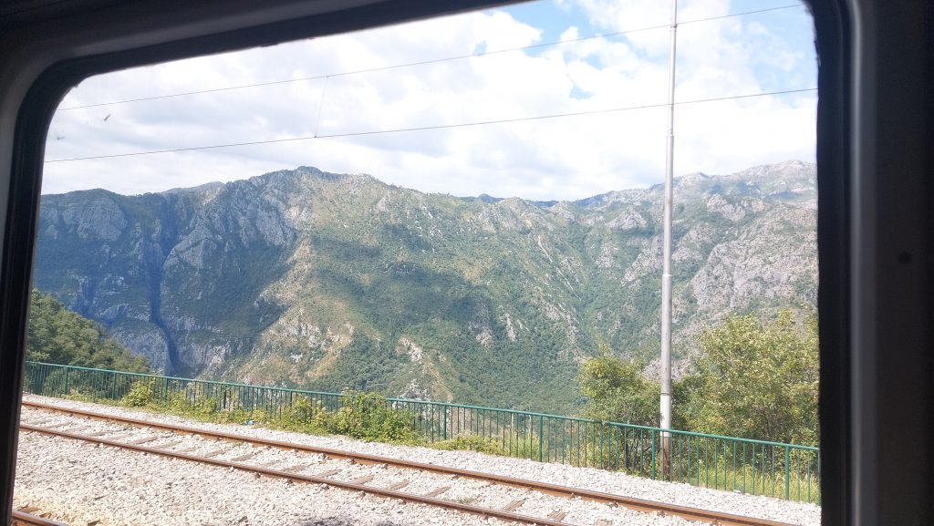 Montenegro ist zwar klein, hat aber dennoch ein eigenes Schienensystem, das noch aus jugoslawischer Zeit stammt – daher auch der passende Name: Titos Gebirgsbahn. Die Strecke führt von Bar bis nach Serbien, wurde nach 25 Jahren Bauzeit 1975 eingeweiht, enthält endlose Tunnel und Galerien und überquert Europas höchste Eisenbahnbrücke (198 m). Diese Brücke wurde 1973 fertigstellt und ist immer noch in Betrieb. Dieses Spektakel, die eingesetzten Lokomotiven sind übrigens auch alle 40 Jahre und älter, konnten wir uns natürlich nicht entgehen lassen und haben uns für die Fahrt von Podgorica nach Kolašin entschieden. Für diese Strecke zahlt man pro Person 3,40 Euro in der zweiten Klasse oder 5,10 Euro in der Premiumvariante. Wir hatten eigentlich vor, in der ersten Klasse zu reisen, aber die Fahrkartenverkäuferin war wohl des Englischen nicht mächtig und hat uns das Ticket für die zweite Klasse ausgestellt. Wir hatte keine Lust auf Diskussionen in einer Sprache, die wir nicht beherrschen, und haben diese Ticketzuteilung einfach mal hingenommen.