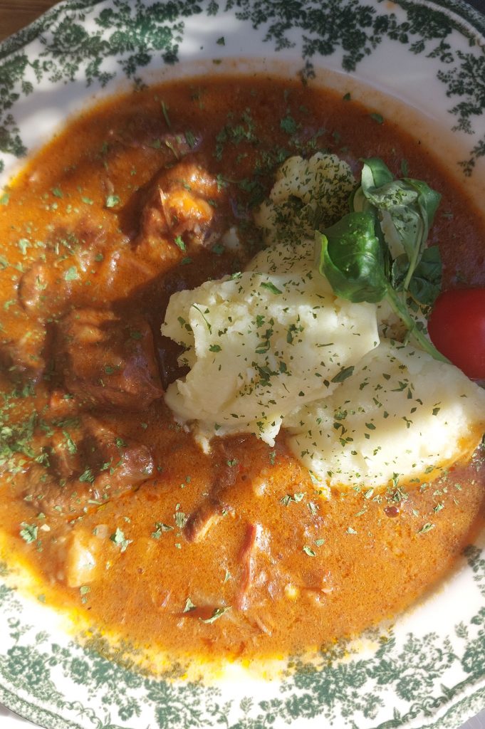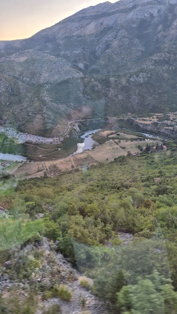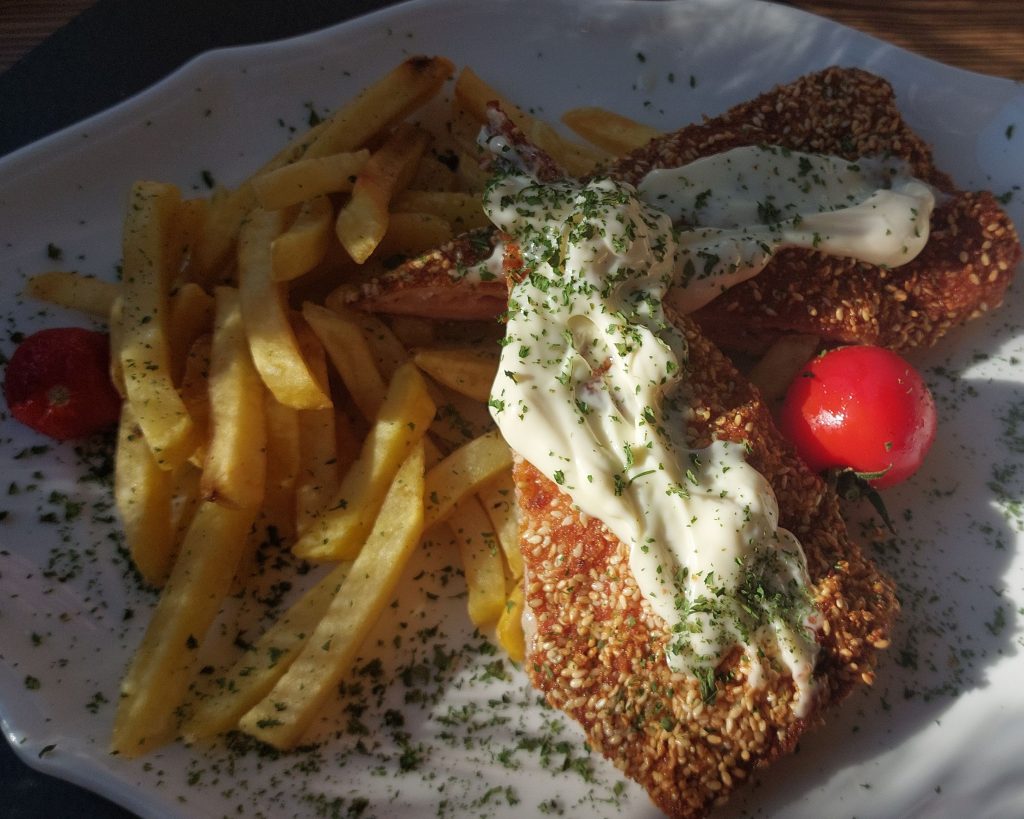 Der Ort bietet für den Sommer aktuell nur Wandern oder Essengehen, ersteres hatten wir ja mit 14 km schon erledigt, also ging es dann zum nächsten Programmpunkt. Das Restaurant Sherpas lag direkt auf dem Rückweg zur Bahnstation und war wie gemacht für einen Zwischenstopp. Die Karte bot eine Mischung zwischen Tradition und Moderne und wir hatten das berühmte Durmitor-Steak in einer Sesaminterpretation, ein traditionelles Gulasch und als Jugendessen eine Pastavariante mit Pesto und Thunfisch. Mit ein paar Getränken haben wir knapp 60 Euro bezahlt und fanden das Preis-Leistungs-Verhältnis wirklich sehr angemessen.