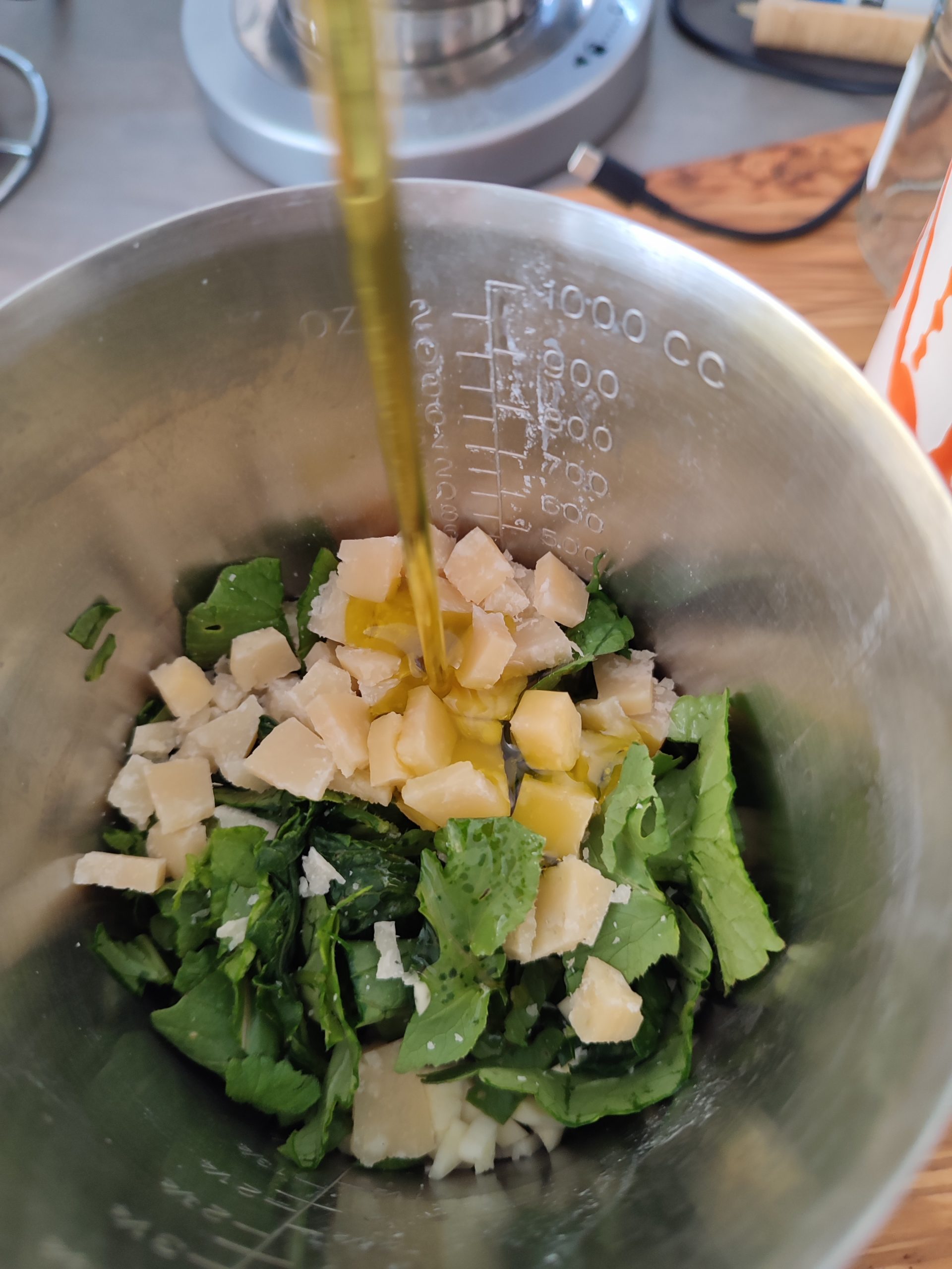 - 50 g Parmesan (für ein veganes Pesto wird der Parmesan durch Haferflocken ersetzt)