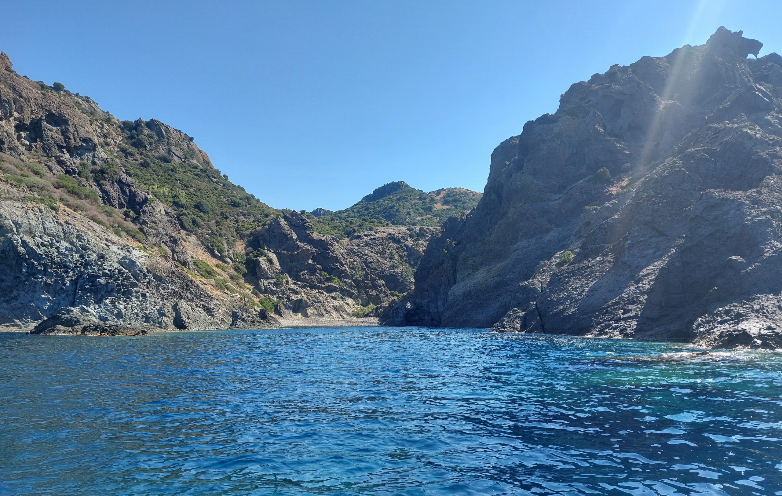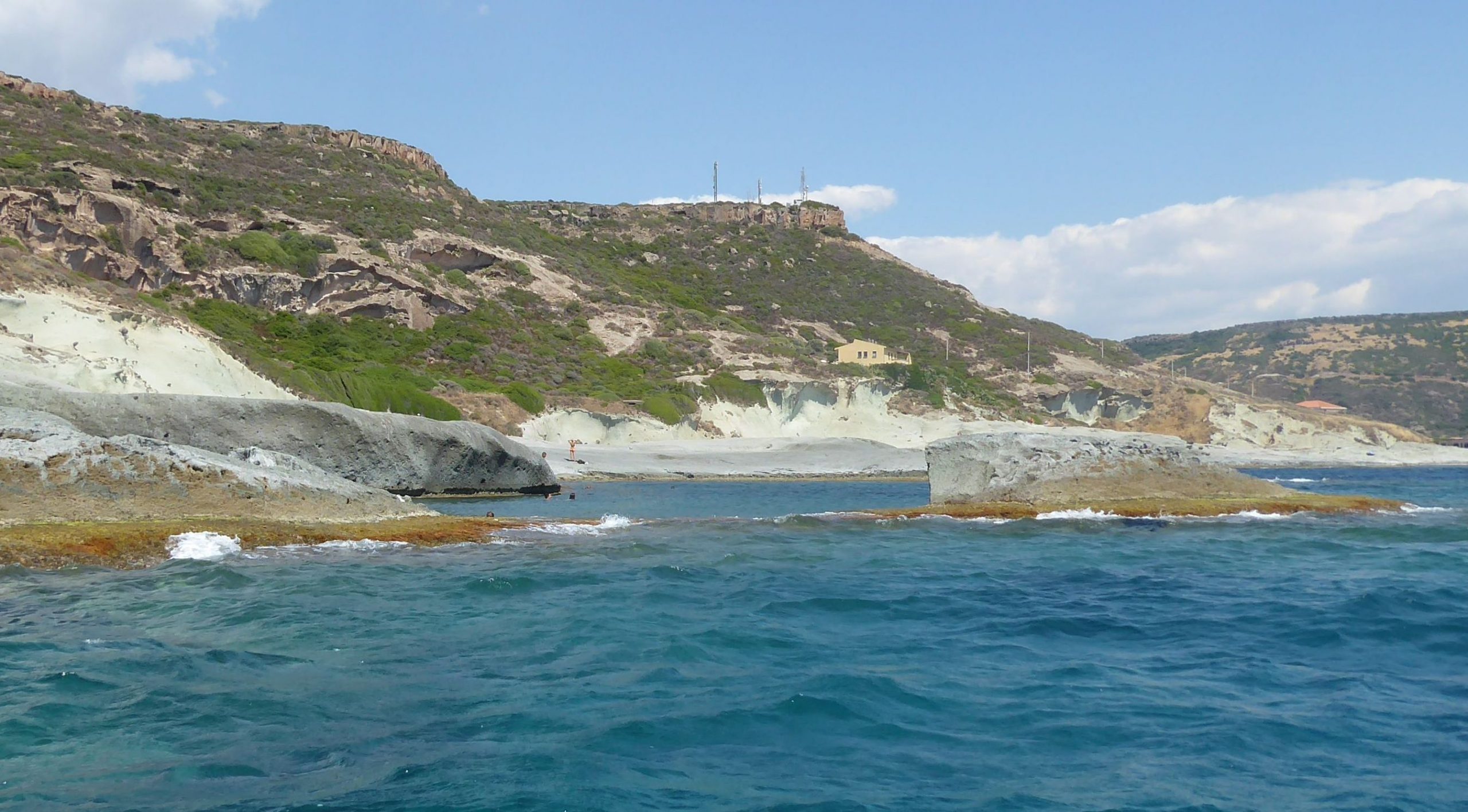 Auf dem Rückweg hatte dann auch der Wind etwas aufgefrischt, so dass wir auch noch ordentlich durchgeschaukelt wurden. Mit entsprechenden Zwischenstopps zum Wässern und Staunen und auch an der natürlichen Badewanne (leider konnten wir dort nicht vernünftig ankern) sind wir wieder sicher in der Marina von Bosa angekommen. Da wir unser Gommoni gut behandelt hatten, war die Rückgabe unproblematisch und wir konnten uns wieder aus dem Staub machen.