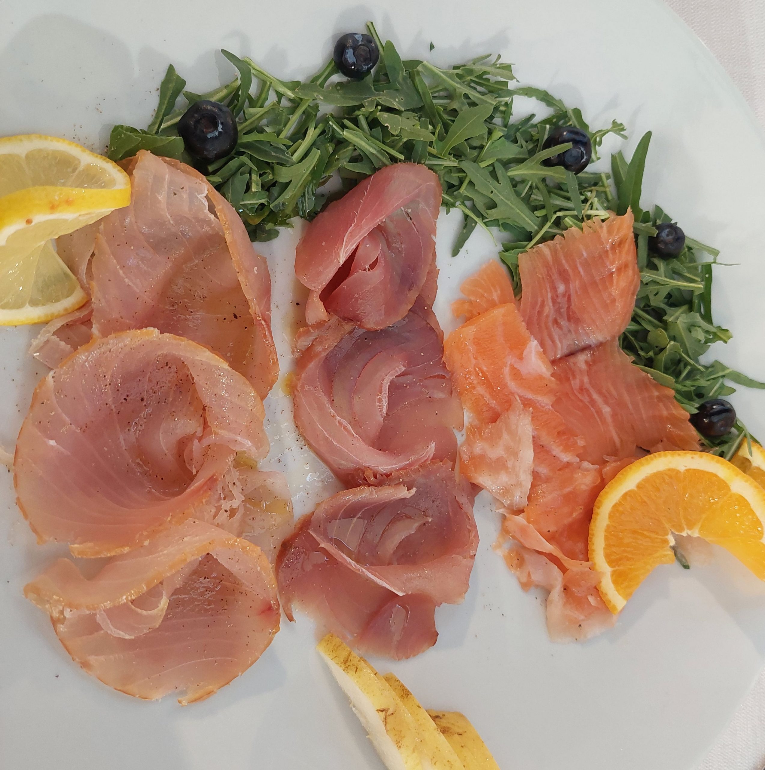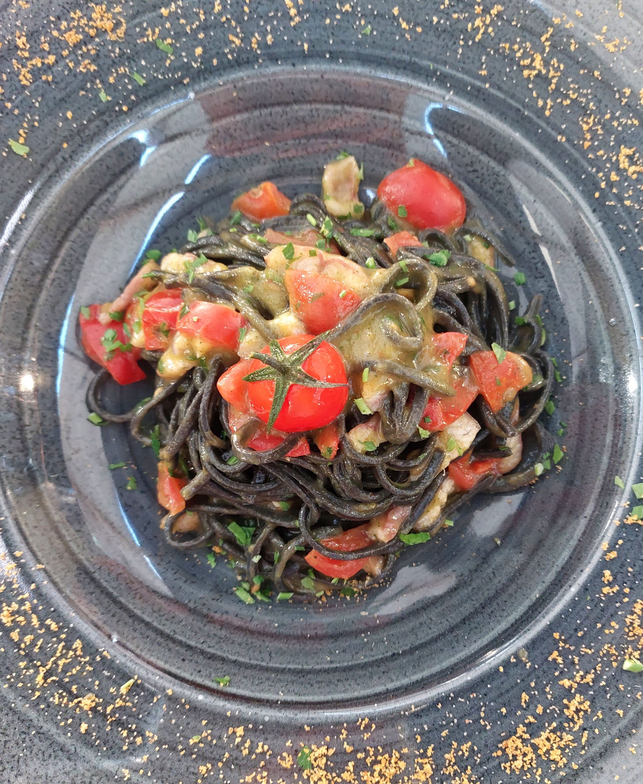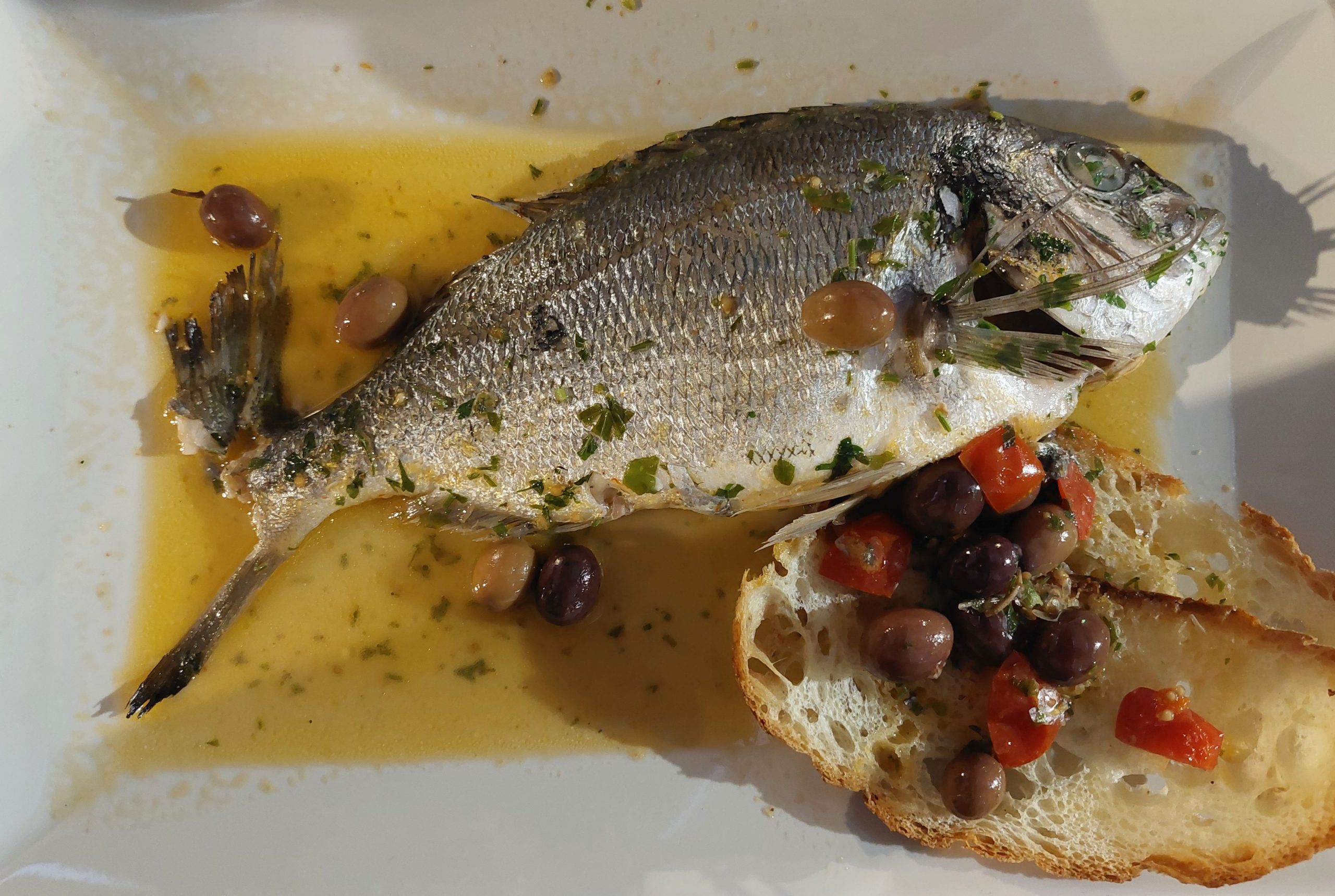 Die Menü-Folge der Erwachsenen: dreierlei Räucherfisch mit Birnenspalten als Antipasti – das war schon mal eine tolle Mischung – und danach Dorade mit Oliven in Weißweinsoße bzw. Tintenfischtinten-Nudeln mit geräuchertem Aal in Zucchini-Creme und anschließend ein Rindersteak in Scheiben geschnitten mit Rucola und einem würzigen Parmigiano. Der junge Mann war wieder als Pizza-Tester unterwegs und hatte nach dem erfolgreichen Verspeisen einer Pizza Salsicia Fresca noch Platz für eine Portion Panna Cotta. Wir waren sehr angetan von dem Lokal und sind deshalb am Freitag wieder dort.