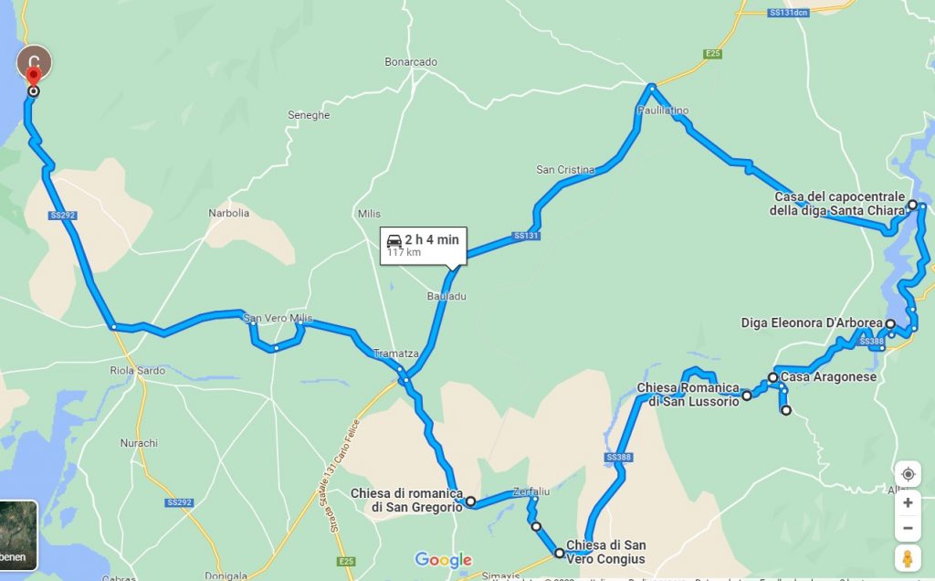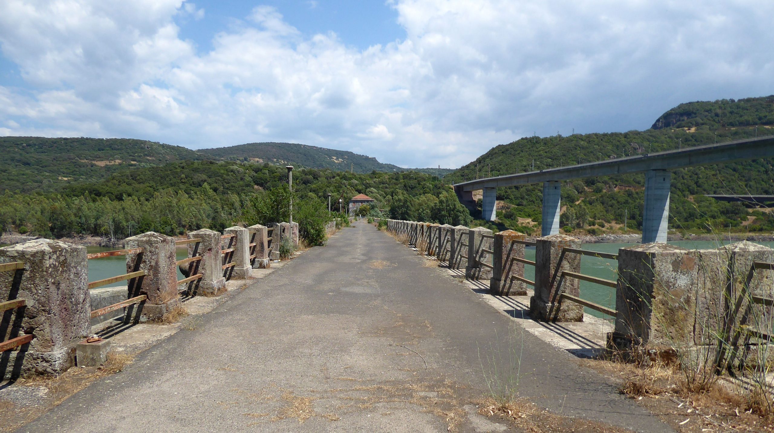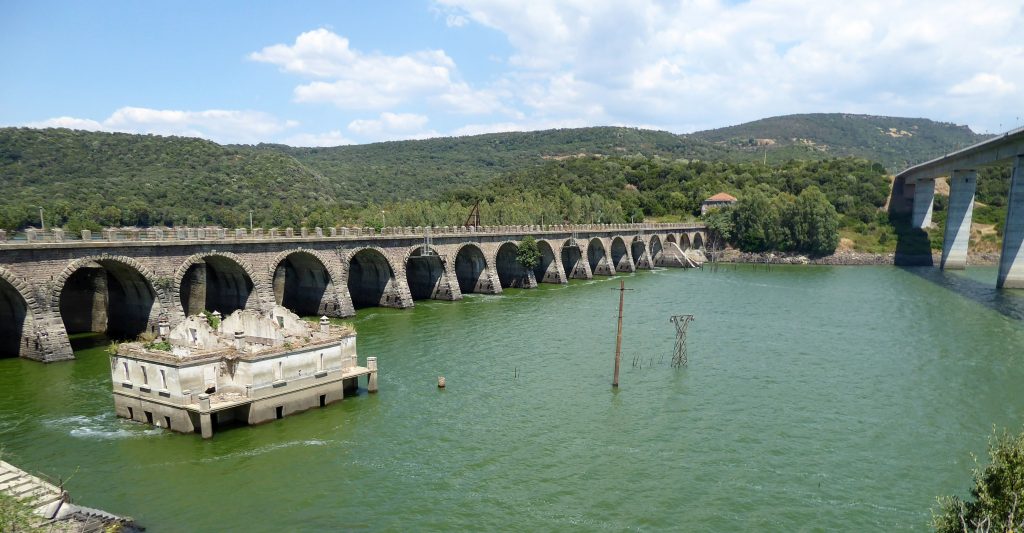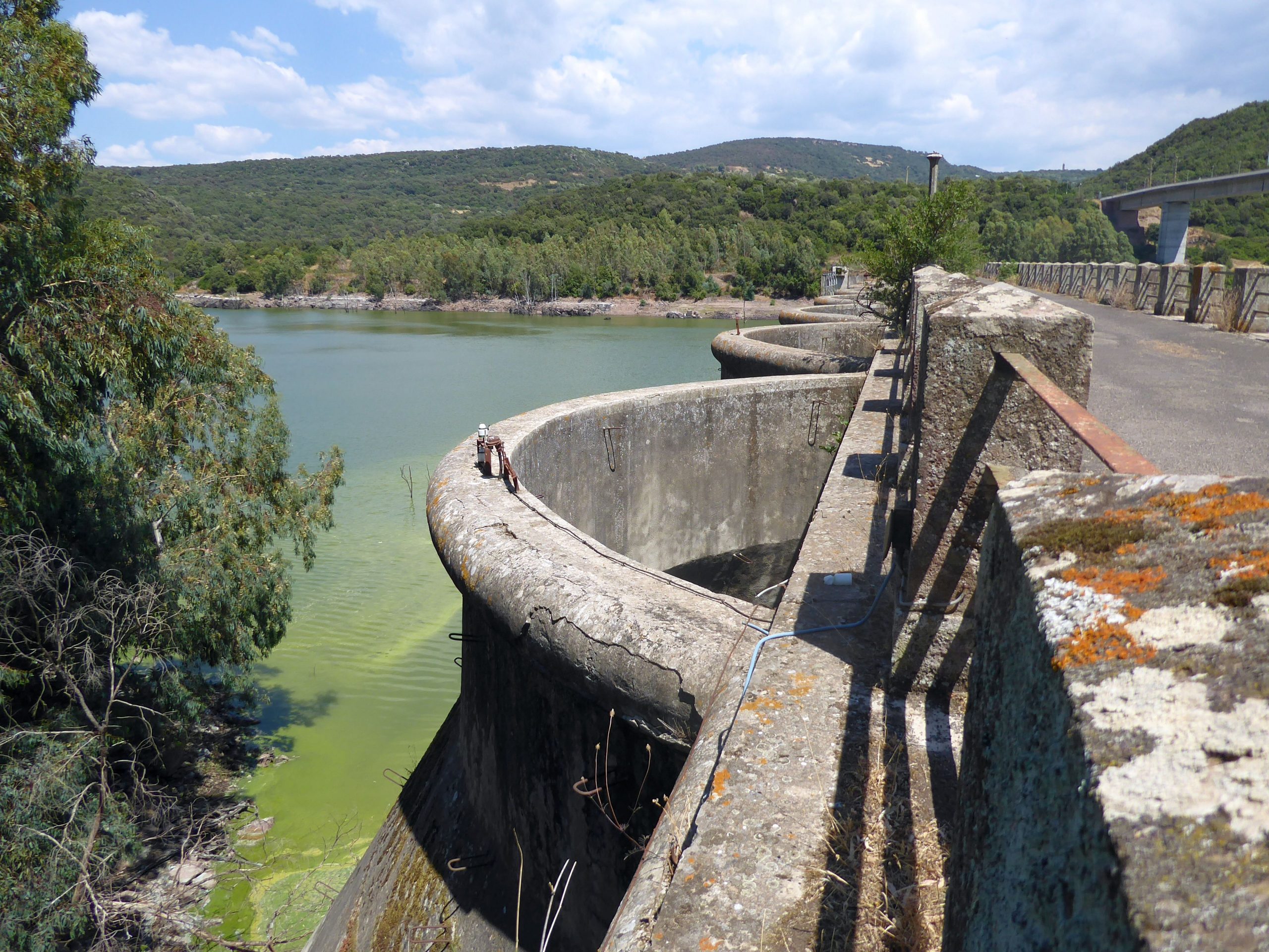 Nachdem wir gestern ja ausgiebig im und auf dem Wasser unterwegs waren, war uns heute eher nach einer kleinen Rundreise ins Landesinnere. Vom Wasser sind wir dann doch nicht ganz losgekommen, deshalb haben wir uns den alten Staudamm des Flusses Tirso aus den 1920er Jahren angesehen. Es gab dort zwar irgendwelche Schilder, aber unser Italienisch ist einfach zu schlecht, um diese lesen zu können. Dass wir auf dem Weg durch einen Schlagbaum klettern mussten, ist sicher nicht weiter tragisch und es hat uns ja auch keiner gesehen – nur so konnte sichergestellt werden, dass es auch aussagekräftiges Bildmaterial gibt.