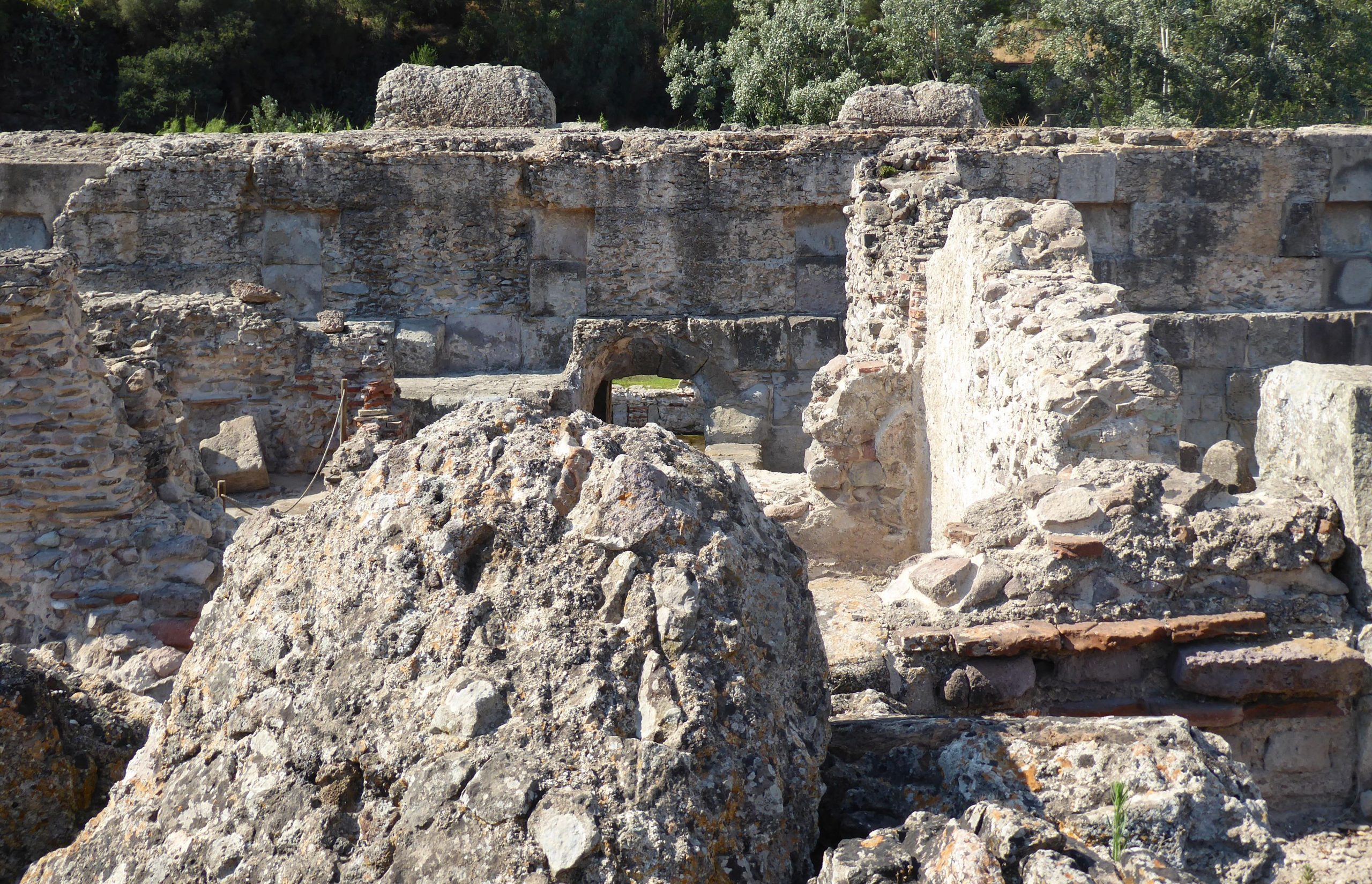 Im gleichen Ort gab es auch noch eine römische Therme, direkt am Fluss gelegen und mit einer Heißwasserquelle, die sogar noch aktiv war, wie wir uns mit den Händen persönlich überzeugen konnten. In der Therme gab es auch wieder deutschsprachige Audioassistenten, die es zusammen mit der ausgehändigten Karte wirklich schaffen, den Aufbau einer römischen Therme richtig zu verstehen. Das ungefähr 54°C warme Wasser wird auch heute noch therapeutisch genutzt, auf der gegenüberliegenden Flussseite gibt es eine Reha-Einrichtung, die über eine Leitung mit dem warmen Wasser versorgt wird. Mehr Informationen gibt es auf der Internetseite des Forum Traiani.