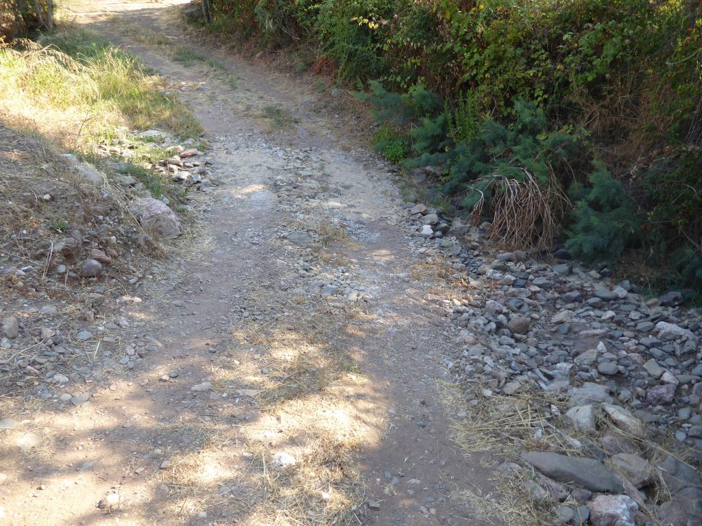 Danach wollten wir noch Domus de Janas („Feenhäuser“, Grabstätten aus der Ozieri-Kultur, Ende der Jungsteinzeit) erforschen – diese kannten wir auch schon von früheren Besuchen auf der Insel. Trotz mehrerer Anläufe auf abenteuerlichen Schotterwegen kamen wir nicht zum Ziel. Wenigstens wurde die Staubschicht auf dem Auto aufgefrischt und vielleicht kommen wir so auch mit sardischem Dreck wieder in Deutschland an.
