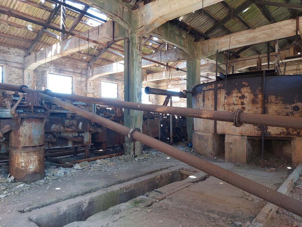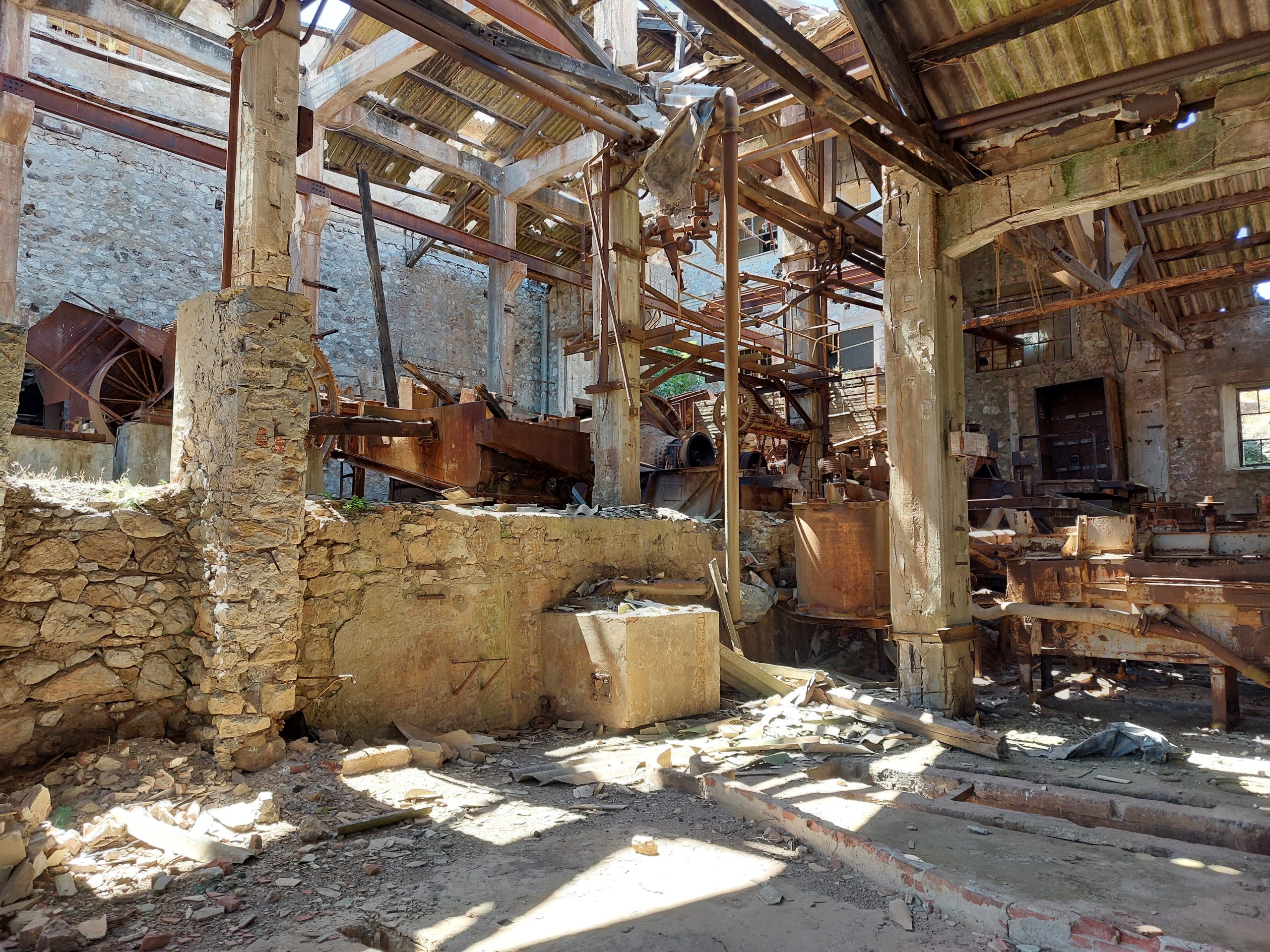 Da in dieser Region früher viel Bergbau (Silber, Blei, Zinn) betrieben wurde, haben wir auch noch eine alte Miene und Erzwäsche gesucht und gefunden (Laveria di Genna Carru). Die Absperrung war schon offen und so haben wir uns in dieser Industrieruine einfach mal etwas umgeschaut. Einige Maschinen waren noch vorhanden und so konnte man einen Eindruck bekommen, was damals dort bewegt wurde. Der Bergbau wurde um die 1970er Jahre auf Sardinien eingestellt und die Gebäude überlässt man vermutlich wieder der Natur. Trotz der 50 Jahre Stillstand konnte man im Gebäude noch den Geruch von Öl und anderem wahrnehmen. Für die Anreise empfiehlt sich eine geländetaugliches Fahrzeug oder zumindest ein Mietwagen. Da wir ja dieses Jahr mit dem eigenen Fahrzeug hier sind, mussten wir etwas vorsichtiger sein. Den letzten Kilometer sollte man aber besser zu Fuß zurücklegen. Es gibt sicher noch besser erhaltene Anlagen auf Sardinien, die auch mit Führungen besucht werden können – ein Besuch hier ist aber deutlich abenteuerlicher.