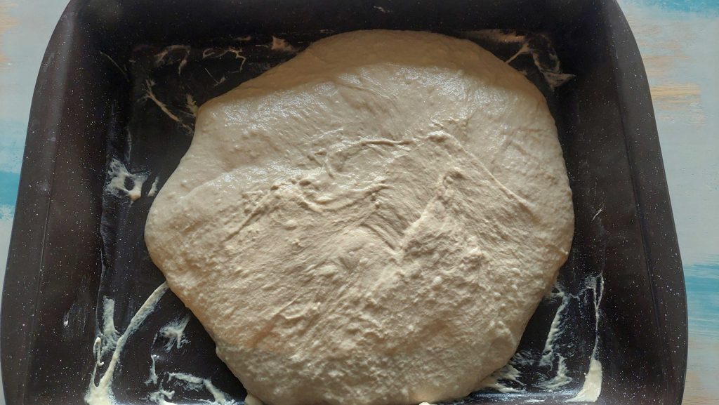 Die Zutaten vermischen und mindestens 24 Stunden ruhen lassen. Wenn sich viele kleine Bläschen gebildet haben, ist der Teig bereit für den nächsten Schritt.