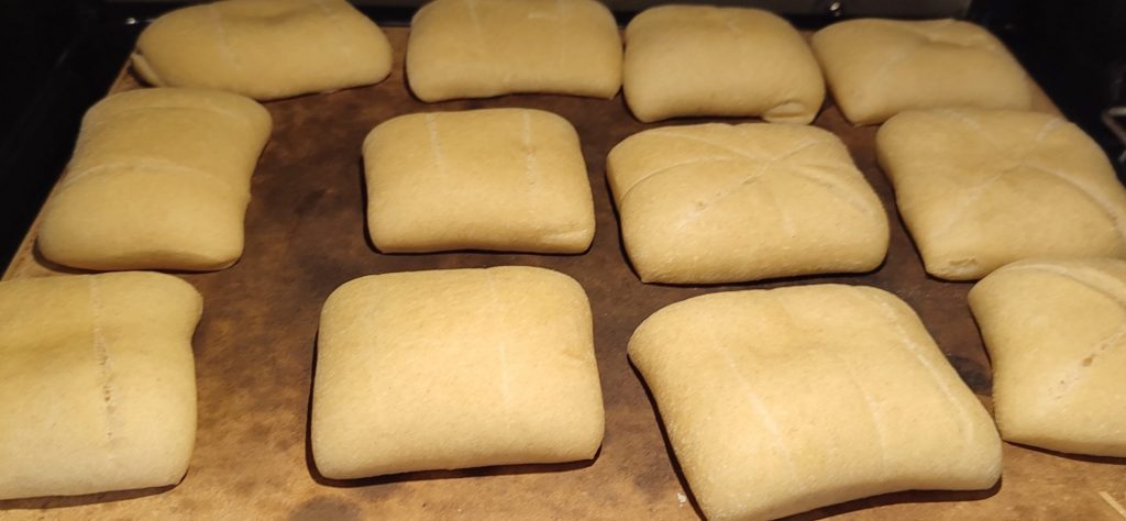 Da die Brötchen nicht so hoch sind, funktioniert das Aufknuspern auch ganz hervorragend im Toaster.